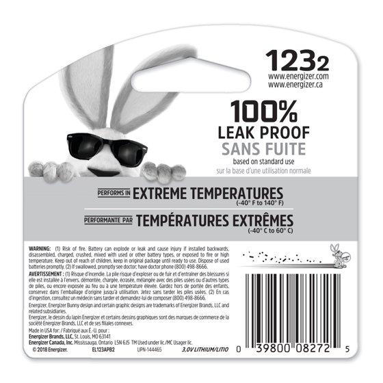 - 2 pack of Energizer 3V 123 Lithium Batteries for the important devices you count on each day