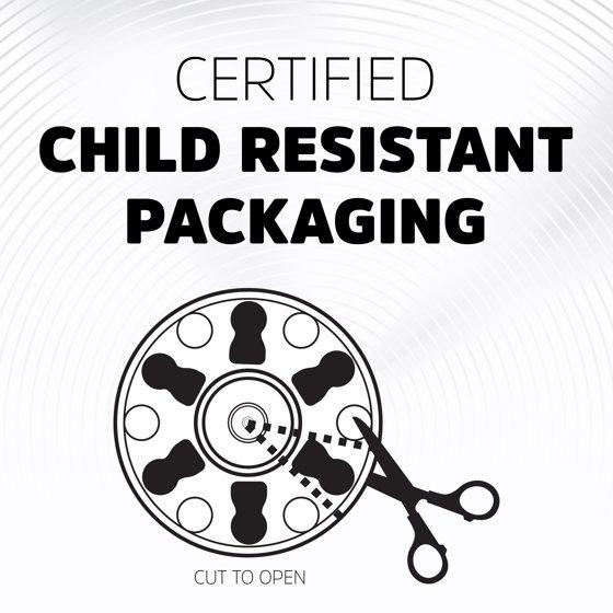 - Certified child resistant packaging - 100% child resistant in CRP testing* *Senior Adult Test, Sequential Child Test, CPSC 16 CFR PART 1700.20, August 2023, Prepared by Child Related Research, Inc