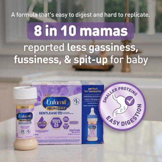 - DESIGNED FOR ALL-IN-ONE DIGESTIVE COMFORT IN 24 HOURS - Enfamil NeuroPro Gentlease is a baby formula designed to ease or reduce fussiness, crying, gas, and spit-up in just 24 hours