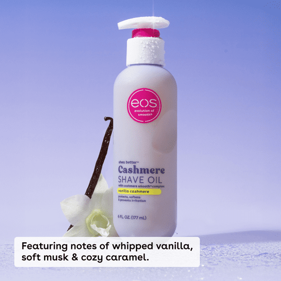 - CASHMERE SMOOTH™ COMPLEX: eos Shave Oil is made with a moisture-rich blend of shea butter, cocoa butter, and argan butter to soften, hydrate, and cushion skin as you shave