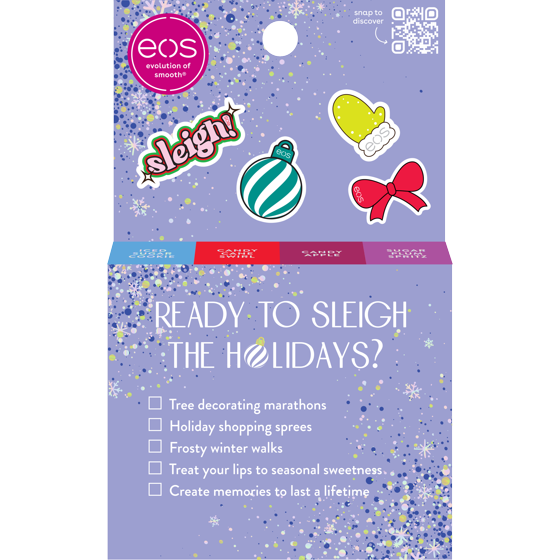 eos Holiday Lip Balm Gift Set, Sugar Plum Spritz, Iced Sugar Cookie, Candy Apple, Candy Cane Swirl, 4-pack, 0.14 oz