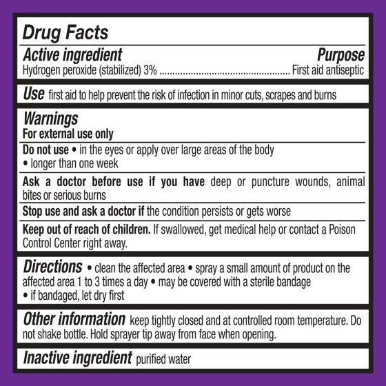 - Contains 3% hydrogen peroxide