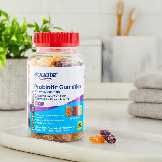 (3 pack) Equate 3-in-1 Daily Dietary Supplement Probiotic Gummies, Natural Fruit Flavors, 60 Count