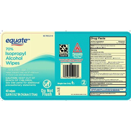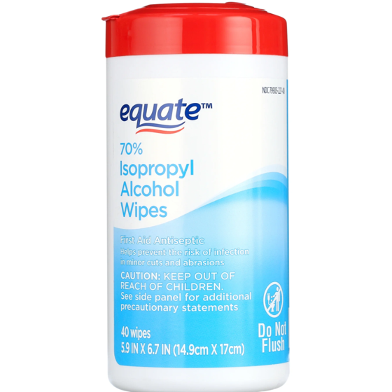 - Equate 70% Isopropyl Alcohol Wipes, 40 Wipes