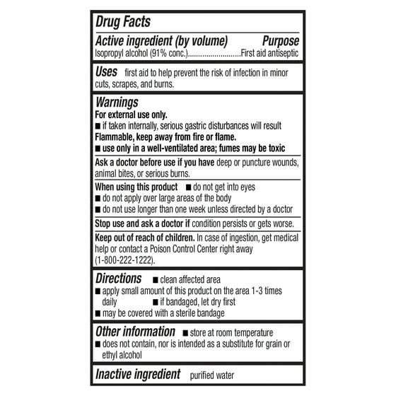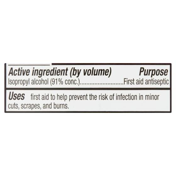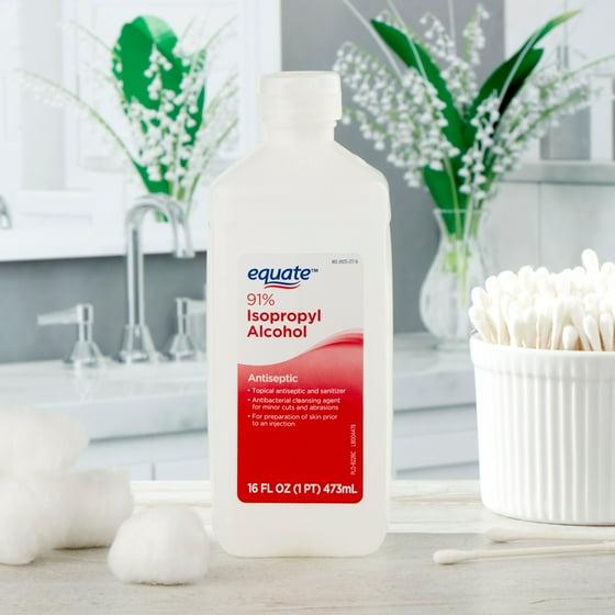Equate 91% Isopropyl Alcohol Liquid Antiseptic is the perfect solution for cleaning and sanitizing skin and surfaces. The 91% isopropyl alcohol solution is a powerful agent for cleaning cuts, burns, scrapes, and scratches while also promoting a speedy recovery. It is also excellent for cleaning oils, greases, glues, and inks from surfaces. Each 16-ounce bottle is ideal for every first aid kit at home, in your car, or at the office. For those who must self-administer injections for medical conditions like diabetes, this solution is perfect for sterilizing both your needle and the injection site. Whether you're sterilizing a wound, or simply want a fresh, clean home free of germs, this cleaning and sanitizing solution is the answer. For whenever you need a helping hand, bring home a 16-ounce bottle of Equate 91% Isopropyl Alcohol Antiseptic today.