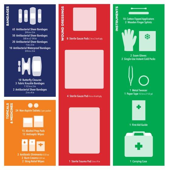 - Equate All-Purpose First Aid Kit with Antibacterial Bandages, 250 Items