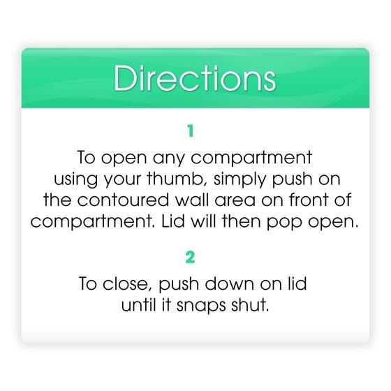 - Lids remain open while you fill your daily medications