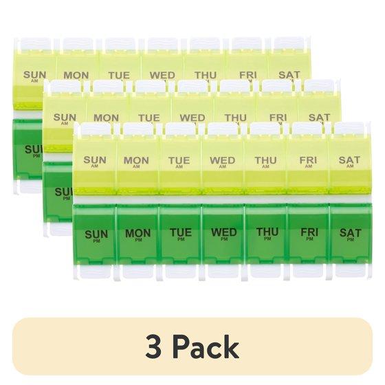 (3 pack) Equate AM/PM Weekly Pill Planner, Large Capacity Easy Open Pill Case