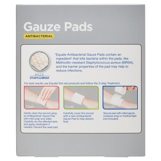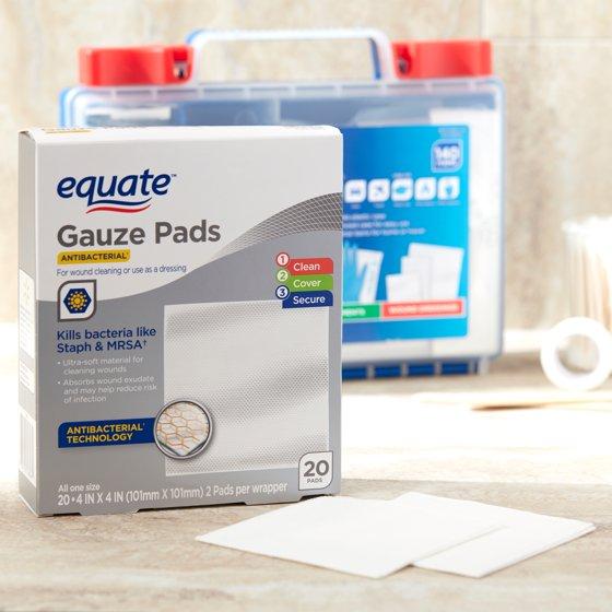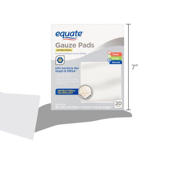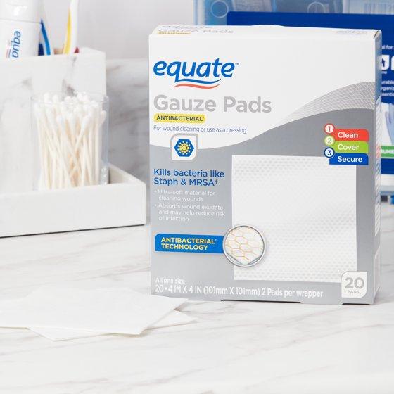 - Equate Antibacterial Gauze Pads, 4 in x 4 in, 20 Count