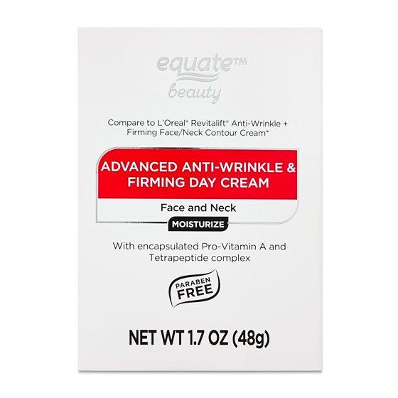 - Equate Beauty Advanced Anti-Wrinkle and Firming Day Cream Face and Neck Moisturizer, 1.7 oz