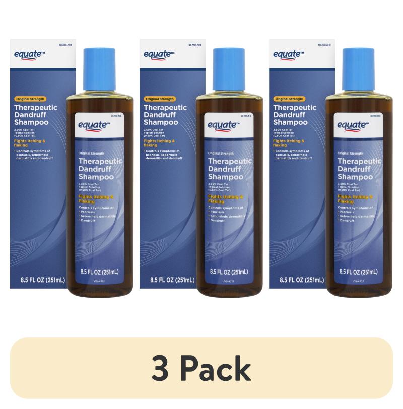 (3 pack) Equate Beauty Therapeutic Anti Dandruff Shampoo with 1.0% Coal Tar for Scalp and Hair Care, 8.5 fl oz,