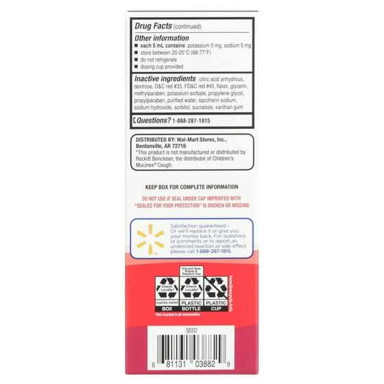 Equate Children's Cough Liquid, Cherry Flavor, Ages 4 to 12 Years, 4 fl oz, Compare to Children's Mucinex® Cough Active Ingredients