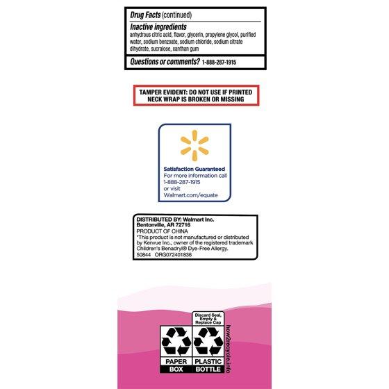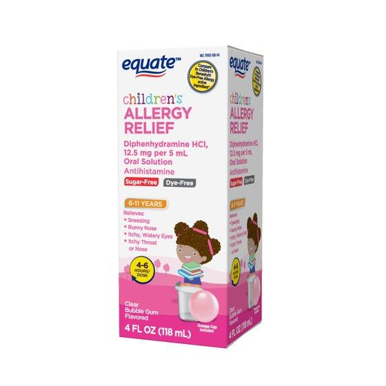 - Equate Children's Dye-Free Allergy Relief Liquid, Bubblegum Flavor, 4 fl oz