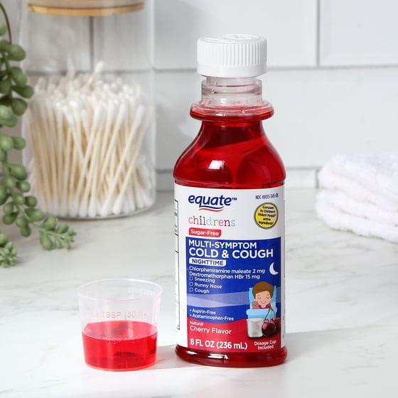 Equate Children's Sugar-Free Multi-Symptom Cough & Cold Nighttime Liquid, Cherry Flavor, 8 fl oz, Compare to Children's Vicks® Nyquil™ Active Ingredients