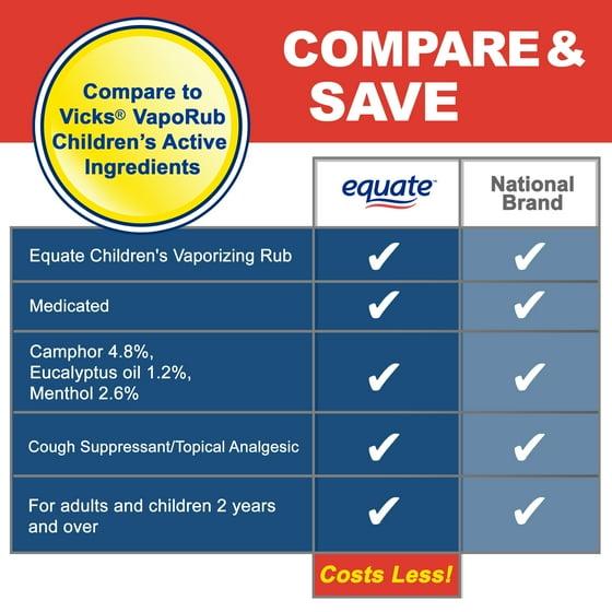 Equate Children's Vaporizing Rub Ointment, Ages 2+, 1.76 oz, Compare to Vicks® VapoRub™ Children's Active Ingredients