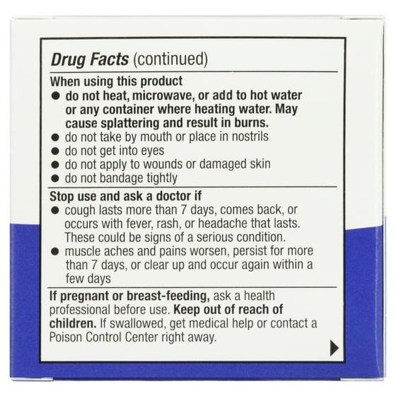 Rub a thick layer on the throat and chest for cough or rub on sore aching muscles or joints