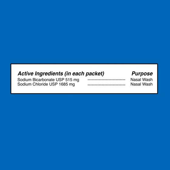 Active Ingredients: (In each packet) Sodium Bicarbonate USP (515 mg), Sodium Chloride USP (1685 mg). Purpose: Nasal Wash, Nasal Wash