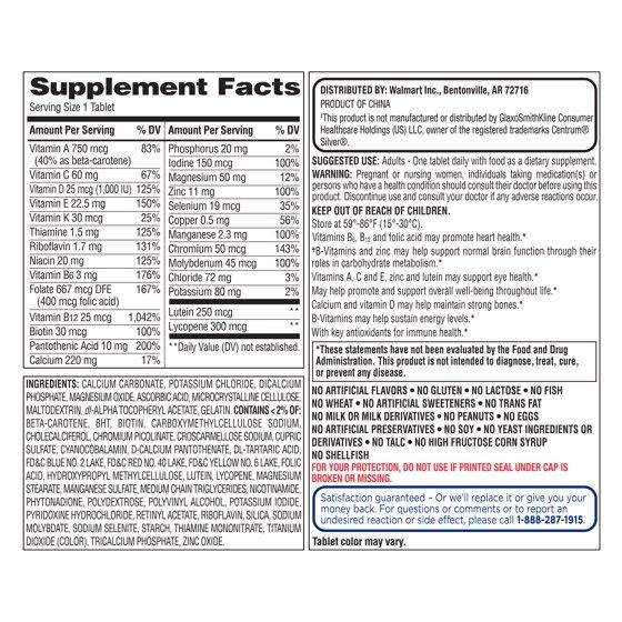 - **This product is not manufactured or distributed by GlaxoSmithKline Consumer Healthcare Holdings (US) LLC, owner of the registered trademarks Centrum® Silver®.