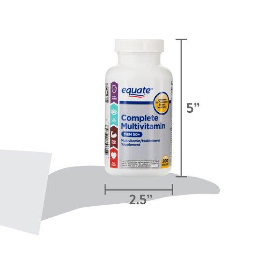 Equate Complete Multivitamin/Multimineral Supplement Men 50+ is a once-per-day multivitamin formulated specifically for men over 50. It delivers key vitamins and minerals to support eye, brain, muscle, heart, immune, and prostate, and colon health. You can rest assured that Equate Complete Multivitamin/Multimineral Supplement for Men 50+ is produced with strict quality guidelines and is backed by our quality guarantee.