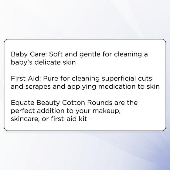 • Equate beauty cotton rounds are the perfect addition to your makeup, skincare, or first-aid kit