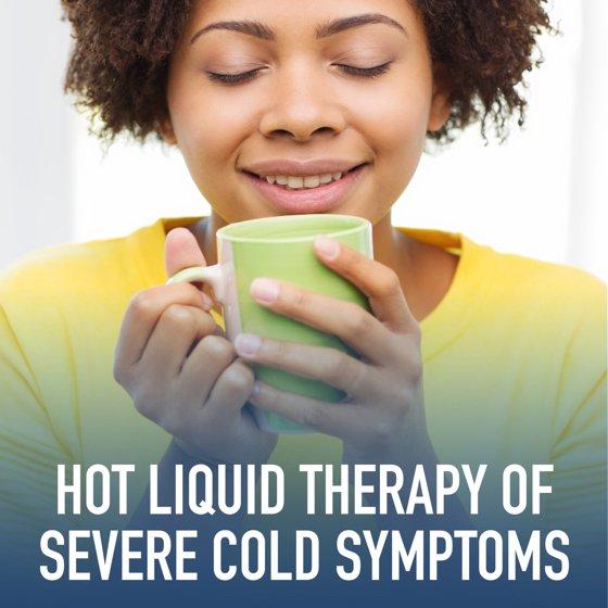 - Soothing green tea and honey lemon-flavored medicine provides liquid hot therapy for fast relief