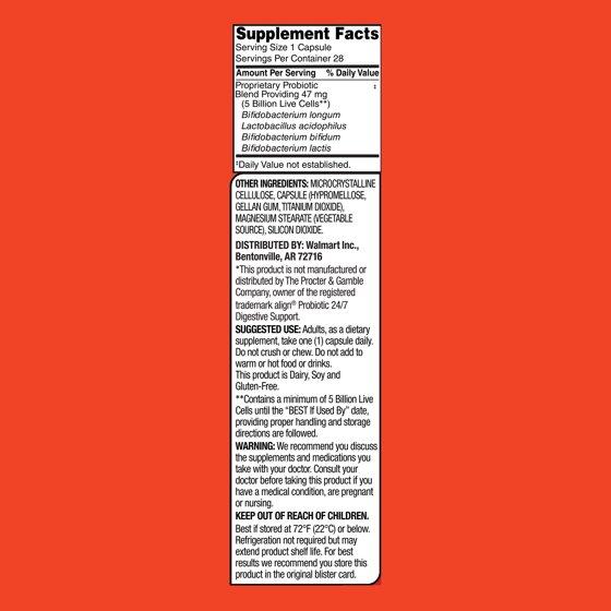 Equate Digestive Probiotic Supplement Delayed-Release Capsules, Unisex, 28 Count, Compare to Align® Probiotic 24/7 Digestive Support