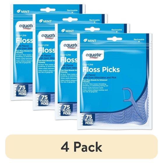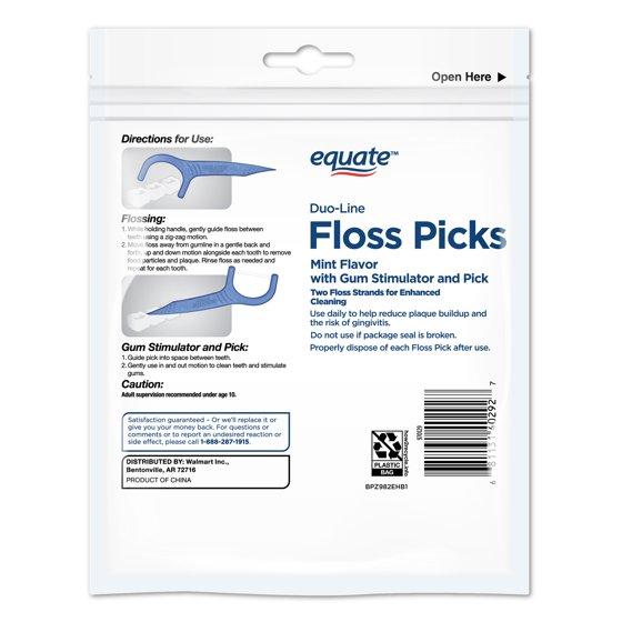 - INCLUDES: 75 Equate Double Line Dental Floss Picks with Gum Stimulator and Pick with Two Strands of Floss