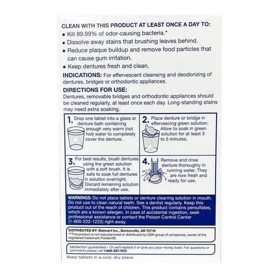 Keep your mouth healthy and your smile radiant with Equate Mint Fresh Antibacterial Denture Cleanser Tablets. Our convenient cleanser tablets contain a layer of baking soda to clean and deodorize and a minty green layer to freshen breath for a clean you can feel all day long. For best results, use this product at least once per day and brush dentures using the green solution. Fight bacteria and freshen breath in one step with Equate Mint Fresh Antibacterial Denture Cleanser Tablets. Making the right health decisions can be challenging. With a complete range of products and simple solutions, Equate allows you to take care of your family with confidence.