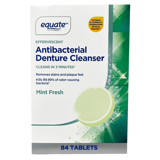 Equate Effervescent Antibacterial Denture Cleanser Tablets, Mint Fresh, 84 Count, Compare to Polident® Antibacterial Denture Cleanser