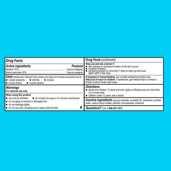 - Active ingredients: Menthol 10%/Methyl salicylate 30%