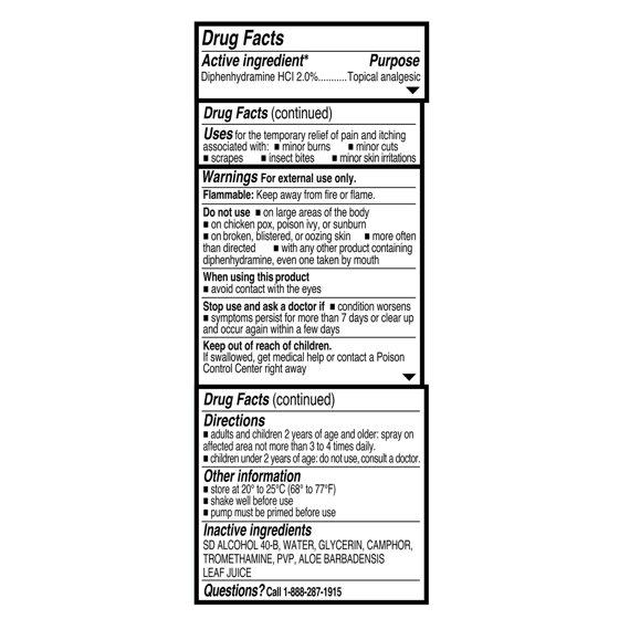 Diphenhydramine HCl, SD Alcohol 40-B, Water, Glycerin, Camphor, Tromethamine, PVP, Aloe Barbadensis Leaf Juice