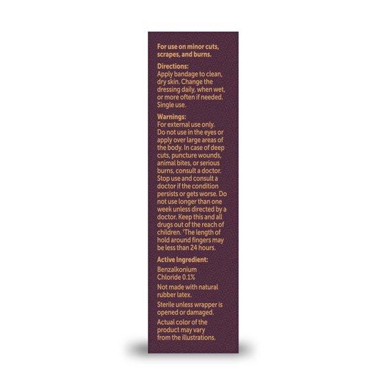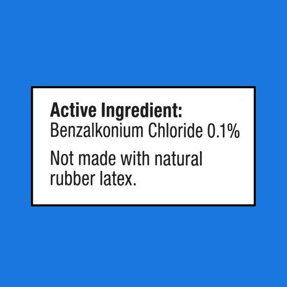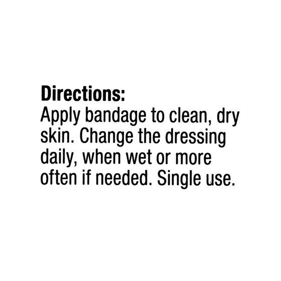 - 3/4 in x 3 in (19 mm x 76 mm). Stretchable, comfortable fabric. Helps prevent infection. 3 x more absorbent. Seals on all sides. Sterile. Gentle, non-stick film protects wound from tearing and disruption. Innovative pad technology absorbs up to 3 x more fluid than most leading bandages. Benzalkonium chloride kills bacteria and helps prevent infection. For use on minor cuts, scrapes, and burns. Not made with natural rubber latex. Sterile unless wrapper is opened or damaged. Satisfaction guaranteed - or we'll replace it or give you your money back. how2recycle.info. For questions or comments or to report an undesired reaction or side effect, please call 1-888-287-1915. Made in the USA with 90% or more US parts. Factory certified.