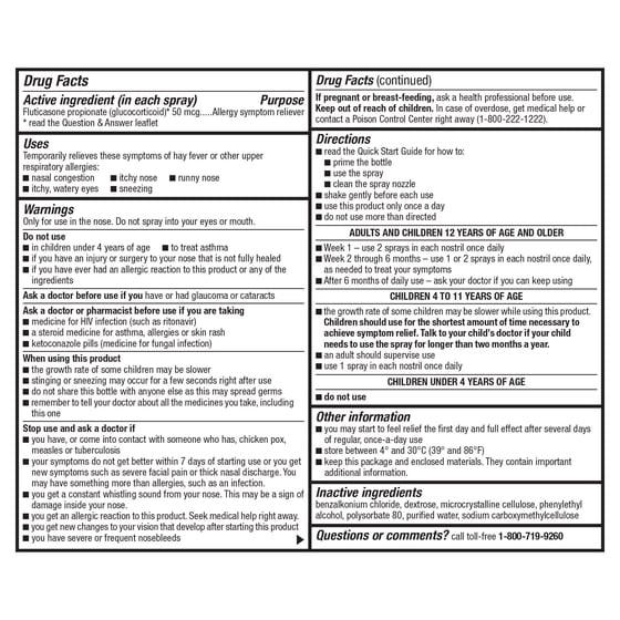 - Active Ingredient Comparison: Fluticasone Propionate, 50 mcg, same as the active ingredient in Flonase Allergy Relief
