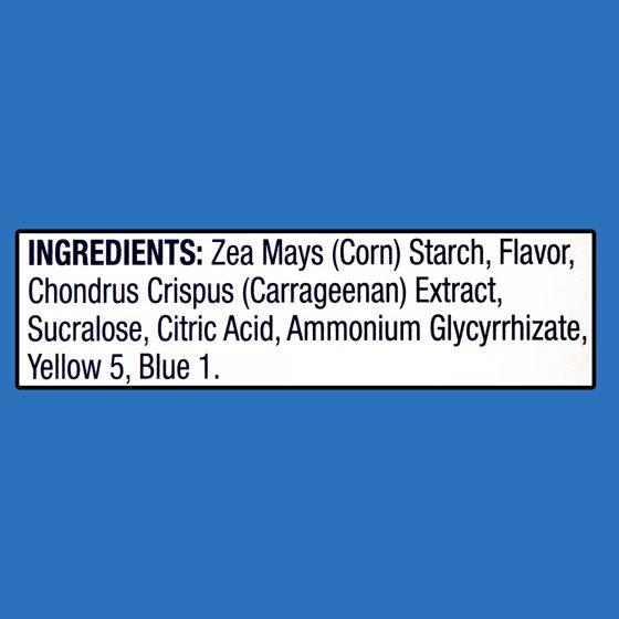 Zea Mays (Corn) Starch, Flavor, Chondrus Crispus (Carrageenan) Extract, Sucralose, Citric Acid, Ammonium Glycyrrhizate, Yellow 5, Blue 1