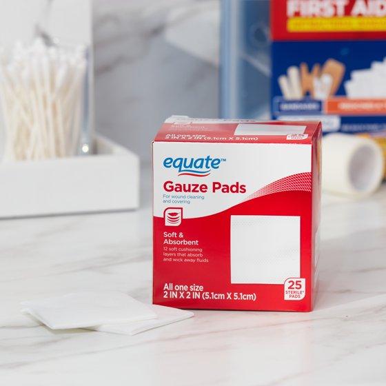 Made with a soft, absorbent and sterile material that is designed to help clean and protect minor cuts, scrapes or burns. These pads feature 12 ultra-plush cushioning layers made of absorbent rayon/polyester fabric that shield wounds from external impurities. Featuring a rubber latex-free design, safe for people with latex allergies. Our pads offer comfort and protection for wounds so that you can go on with your day without worry. To use, simply hold a gauze pad on the injury to stop any bleeding and then use the pad to gently clean the wound with warm water and mild soap. Use a new pad to apply medication and secure it over the wound to provide long-lasting protection; it's that easy! Add Equate gauze pads to your wound treatment supplies and make sure you're prepared for any unexpected accidents. Making the right health decisions can be challenging. With a complete range of products and simple solutions, it allows you to take care of your family with confidence.