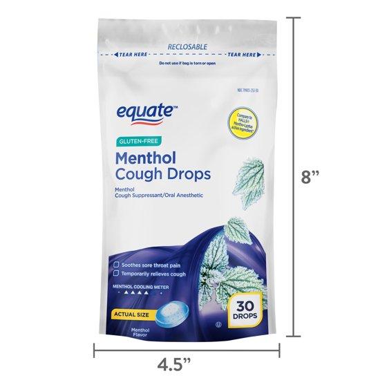 Equate Gluten-Free Menthol Cough Drops, Menthol Flavor, 30 Count, Compare to HALLS® MenthoLyptus Active Ingredient