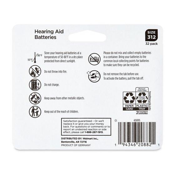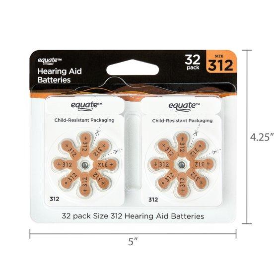 - Equate Hearing Aid Batteries, Size 312, 32 Pack