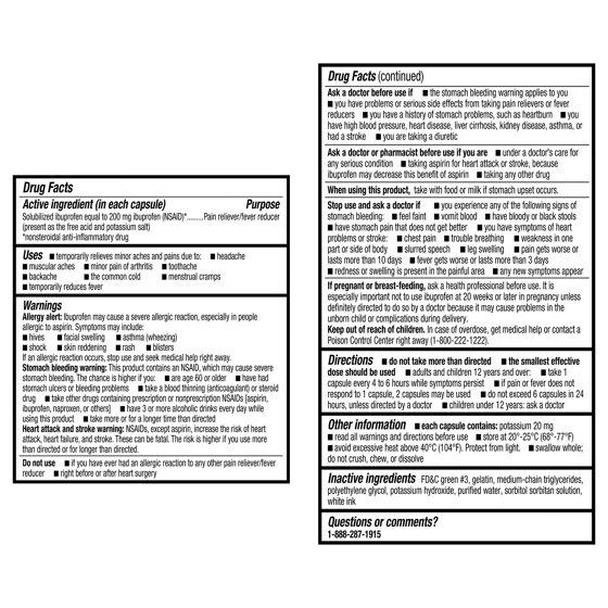 - Contains 80 mini liquid-filled capsules with 200 mg of ibuprofen in each