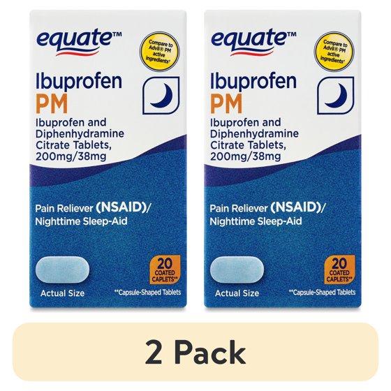 - Equate Ibuprofen PM Sleep Support and Pain Reliever Caplets, 20 Count