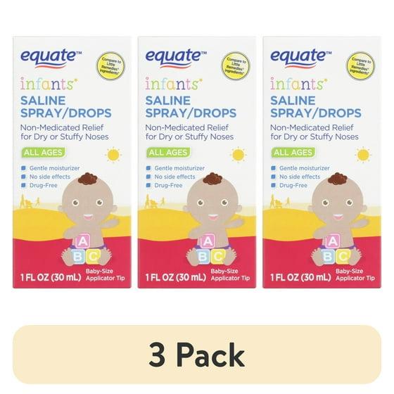 (3 pack) Equate Infants' Saline Spray/Drops, Non Medicated, All Ages, 1 fl oz, Compare to Little Remedies® Ingredients