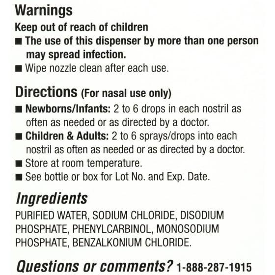 Protect your little one's sensitive nasal passages from cold, dry air with Equate Infants' Saline Spray/Drops, All Ages. This product is non-medicated and can be used as often as needed without the worry of any harmful side effects or drug interactions. The specially buffered formula is alcohol-free and helps moisturize nasal membranes. Our alcohol-free saline formula is designed to relieve dry and stuffy noses so you and your child can enjoy comfortable days and restful nights. The dual-function bottle allows you to dispense the contents either as drops or as a fine mist. Keep your loved ones comfortable during the dreary days of winter with Equate Infants' Saline Spray/Drops, All Ages.