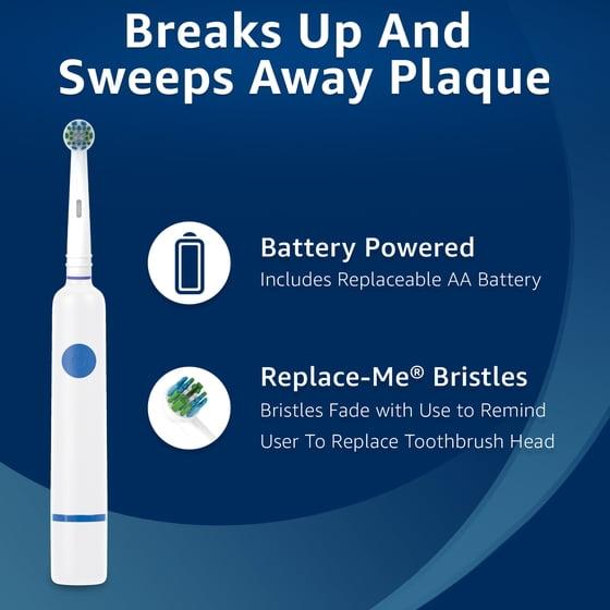 - COMPARE TO: Oral-B Pro-Health Battery Powered Toothbrush. Includes 1 Equate Infinity Power Toothbrush, 2 Brush Heads, and 1 AA Battery