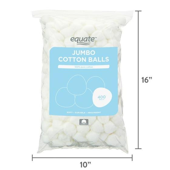 Equate Jumbo Cotton Balls are soft, durable, absorbent, and perfect for catering to all your skin care needs. Our jumbo cotton balls are made from 100-percent pure, natural cotton, which is kind and gentle on most skin types, including sensitive skin. Plus, their jumbo size makes them ideal for various DIY applications too. Use them when applying or removing makeup, lotions, creams, astringents, nail polish, and oil, or for everyday clean up, hobbies, craft projects, and decorations. With 400 cotton balls in each pack, you'll have plenty for whatever you decide to do next. Stay stocked up on self-care essentials like our Equate Jumbo Cotton Balls and grab a pack today for home, craft room or dorm.