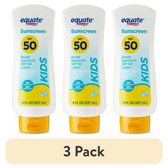 (3 pack) Equate Kids Broad Spectrum Sunscreen Lotion, SPF 50, 8 fl oz
