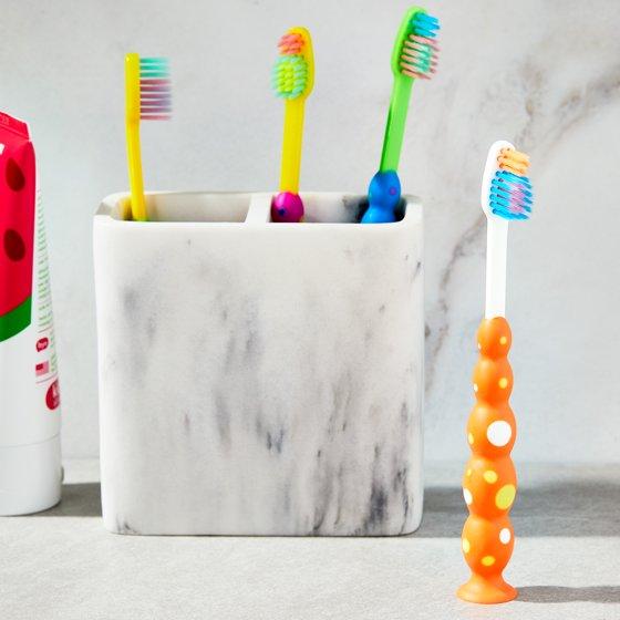 Transform brushing time into a colorful adventure with Equate Kid’s Healthy Fun Manual Colorful Toothbrushes. This set of four brushes with soft bristles and colorful polka dots features lively hues and includes a handy suction stand for neat and easy storage. The gentle bristles make it perfect for kids, ensuring a comfortable and effective cleaning experience. Elevate your child's oral care routine with these vibrant and functional Equate Kid’s Healthy Fun Manual Colorful Toothbrushes.