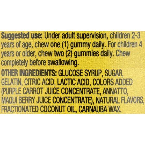 Other Ingredients: Glucose Syrup, Sugar, Gelatin, Citric Acid, Lactic Acid, Colors added (Purple Carrot Juice Concentrate, Annatto, Maqui Berry Juice Concentrate), Natural Flavors, Fractionated Coconut Oil, Carnauba Wax