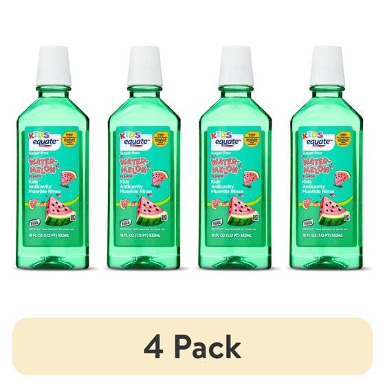 (4 pack) Equate Kids Sugar-Free Kids Anticavity Fluoride Rinse, Watermelon Flavor, 18 fl oz, Compare to Act® Wild Watermelon Anticavity Kids Fluoride Rinse Active Ingredient