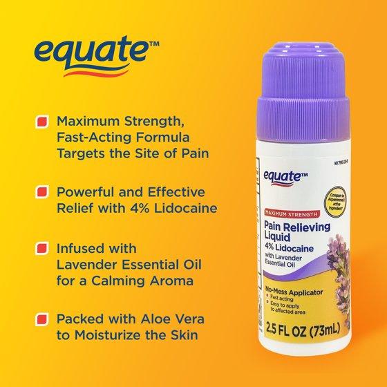 Equate Lidocaine Pain Relief Liquid Roll-On with Lavender Essential Oil 4% Lidocaine, Calming Lavender Scent, Fast-Acting Relief, Compare to Aspercreme® Active Ingredient, 2.5 fl oz