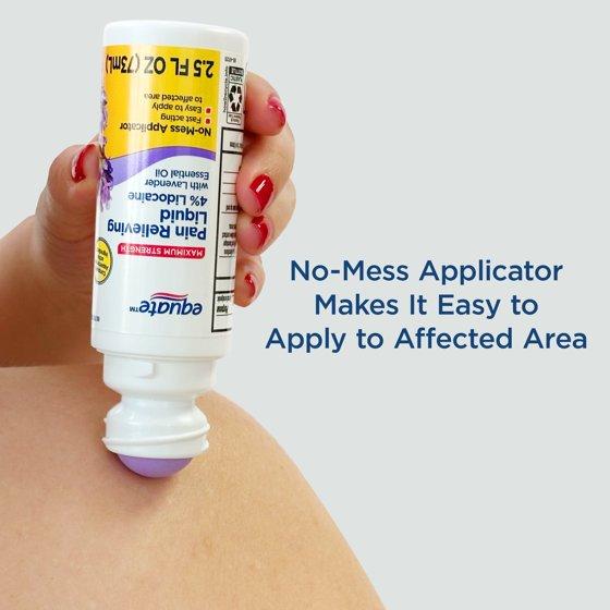 Say goodbye to pain and itching with Equate Maximum Strength Lidocaine and Lavender Essential Oil Pain Relief Liquid Roll-On. Our lavender-scented maximum strength roll-on pain relief cream is formulated with four percent lidocaine, which quickly and effectively works to temporarily relieve pain. The light lavender scent provides a calming aroma, and the aloe vera helps to moisturize your skin. It's the perfect easy-to-use ointment for helping pain-affected areas without irritation. The no-mess applicator makes it easy to apply to affected areas. Keep annoying pains in check with Equate Maximum Strength Lidocaine and Lavender Essential Oil Pain Relief Liquid Roll-On. Making the right health decisions can be challenging. With a complete range of products and simple solutions, Equate allows you to take care of your family with confidence.