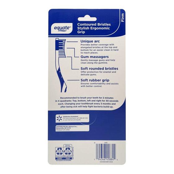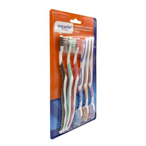 Equate Manual Toothbrush with Firm Bristles, Contoured Bristle Shape + Ergonomic Grip, 6 Pack